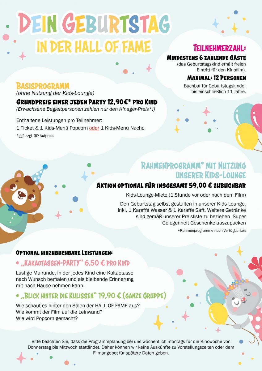 Wählen Sie aus den verschiedenen angebotenen Geburtstagspartys das richtige Paket für Ihr Kind und dessen Freunde aus!